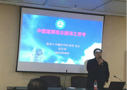 应我校科研处邀请,暨南大学44118太阳成tyc城集团院长、英国剑桥大学高级访问学者、暨南大学硕士生导师赵友斌教授于2016年12月6日下午15:00在图书馆二楼报告厅举行了题为“中国重要概念翻译之思考”的学术讲座。讲座由44118太阳成tyc城集团副院长杨志亭主持,部分博士、硕士研究生参加了本次学术活动。