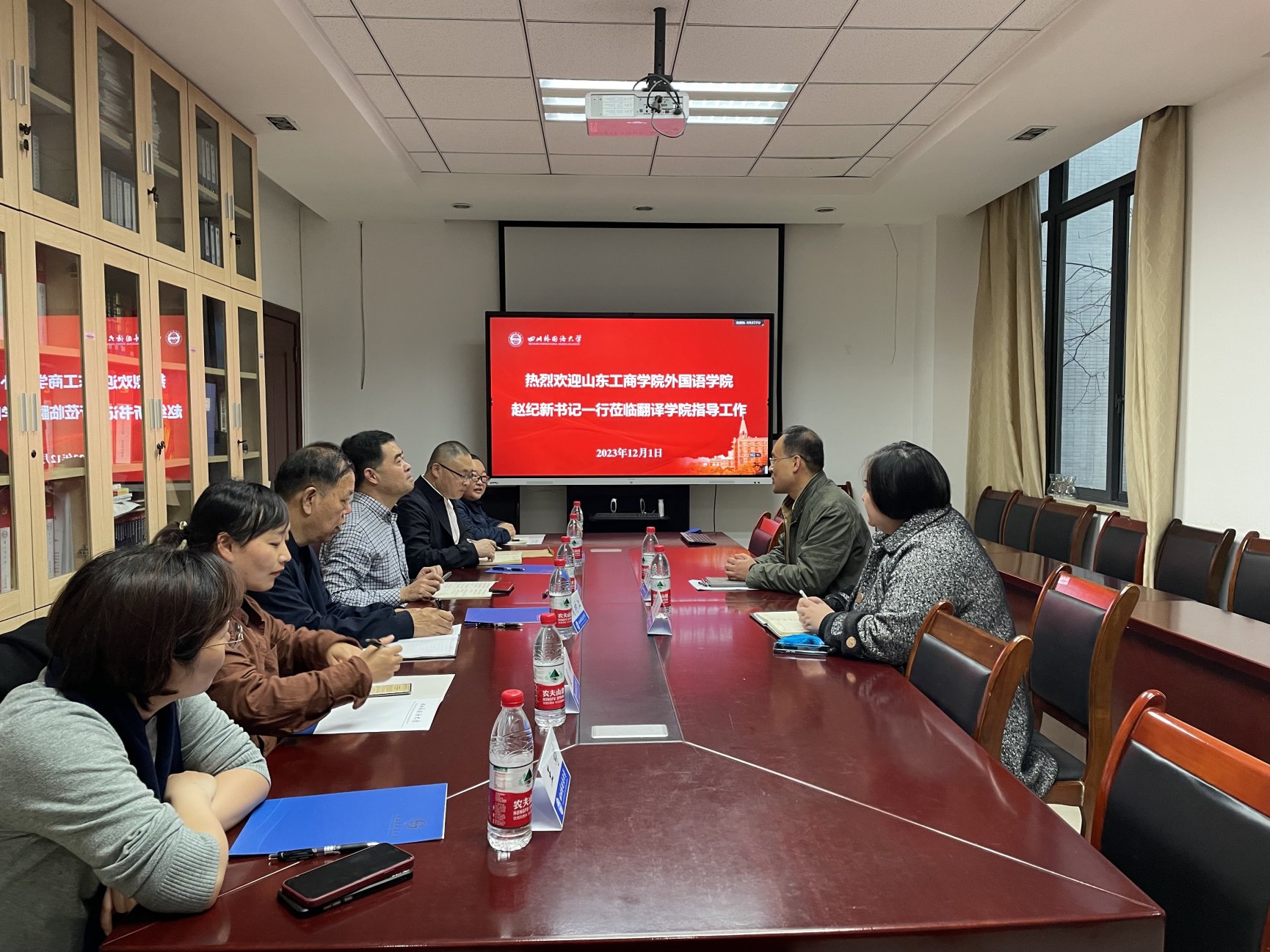 12月1日上午,山东工商学院外国语学院赵纪新书记、王国锋副院长等一行六人莅临我院调研交流。交流会在西区立德楼楼B109会议室进行,参加本次调研交流的有44118太阳成tyc城集团副院长杨志亭、本科教学秘书李亮。