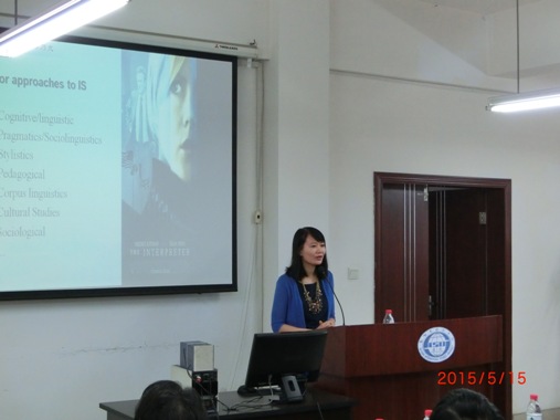任教授首先列举了口译研究的主要方法和途径,其中包括认知语言学、语用学、社会语言学、文体学、语料库、文化研究、社会学等途径。同时,也对当前口译研究的主要形势和方向进行了简要的分析和介绍。接着,任教授主要从社会学和社会语言学角度对口译研究进行分析,她指出,社会学研究口译最主要是解答“为什么”的问题,而社会语言学视角则旨在告诉译者“怎么做”。任文教授指出,我们都是在社会体制和个人情义这两个维度来通过讨论话语问题,因此,译者的角色也就受到了多维度的影响,如翻译机构的要求,客户或者委托方的期待以及个人的态度等维度。任文教授借助Goffman的社会学理论即participation framework对译者的角色进行了阐释,其中主要包含两种模式,即production format和reception format,分别指代译者作为话语发出者和话语接受者的角色。任文教授对此做出了详细地解释,译者作为话语接受者时主要有认可的听者和未认可的听者两种角色,而作为认可的听者,又可以细分为指定听者和未指定听者两种;未认可的听者则可划分为偷听者和无意中听见者两个类别。对于话语的发出者而言,译者主要担任三种角色,分别为转述者、话语作者和机构代言人等。任文教授特别强调,译者的角色绝不仅仅局限于其中的任何一种,相反译者可以担任其中的多重角色。之后,任教授运用她在口译实践中积累的真实实例来解释和说明了译者的多重角色以及不同角色应该采取的翻译策略和方法。最后,任教授对本次讲座进行总结,强调口译既可以用语言学视角进行分析,也可以借助社会和文化视角进行研究,在这三个维度共同作用下,译者也扮演者不同的角色,这些角色也会对其翻译过程和翻译结果产生影响。