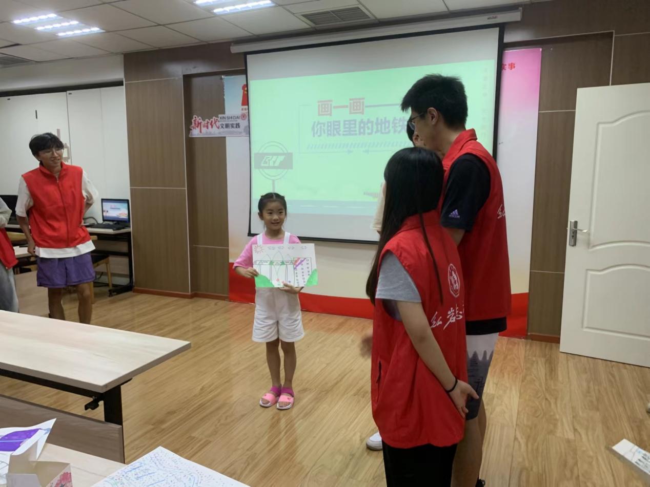 随后,44118太阳成tyc城集团“三下乡”志愿服务团队组织小朋友们进行绘画活动,描绘一下他们眼中的地铁。在绘画过程中,小朋友们都发动自己的小脑筋,妙笔生花,画出了一幅幅色彩纷呈的“地铁肖像”。随后,小朋友们都上台分享了自己的作品,也讲述了作品想法的源头。有“睡觉室、医务室、缩小室”的创新设计,也有“能飞到太空中”的列车,还有“像龙一样的列车”和“穿越在彩虹世界的列车”……小朋友们都有着众多的奇思妙想,让人赞叹不已。
