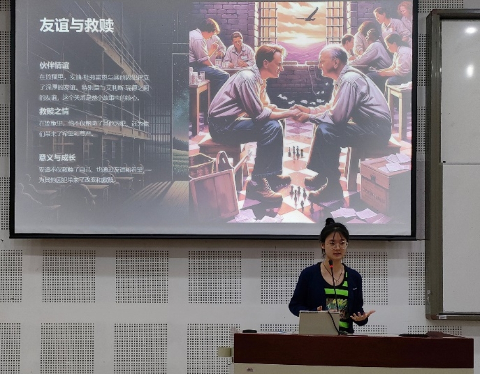 “有些鸟儿天生就是关不住的,它们的羽毛太鲜明,歌声也太甜美、太旷野了,所以你只能放它们走,否则你哪天打开笼子喂它们时,它们也会想办法扬长而去。” 2班伍语希同学为我们详细解读了《肖申克的救赎》。斯蒂芬金笔下的肖申克,有着不羁的灵魂,有着对自由的向往。“这个世界穿透一切高墙的东西,它就在我们的内心深处。” 心若是牢笼,处处都是牢笼。这世上,能囚禁我们的,唯有自己。当我们走出内心的那一座监狱,便是强大的开始。