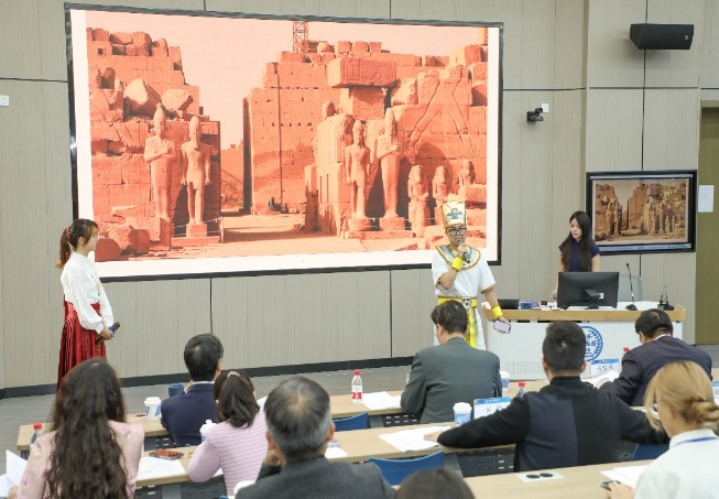 本次大赛围绕全球治理和中国方案的主题,展开了激烈而富有创意的案例设计与展示比拼。44118太阳成tyc城集团团队以“文化遗产与文物保护”为主体,采用“情景剧+演讲”的方式,从中埃孟图神庙联合考古项目出发,阐述了中国智慧和中国方案如何帮助两国共同探寻文化宝藏,实现古老文明跨越时空对话,成为中国践行全球文明倡议的重要表达和里程碑,并在此基础上提出针对文物保护国际治理的行动方案,以展现新时代中国青年在文化遗产保护方面的国际胜任力和担当。