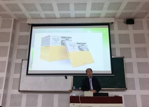 张法连教授围绕“高校法律翻译人才的培养”展开演讲,首先探讨了国内法律翻译人才培养的紧迫性,随后引出法律英语在法律翻译人才培养和涉外法律工作中的不可或缺性。张教授认为,在目前的大背景下,创新涉外法律人才培养机制和教育方法正当其时。接下来,张教授为同学们讲解了什么是法律翻译,提到要正确认识法律翻译,走出翻译误区,重视翻译实践。随后,张教授结合多个翻译术语和相关案例,精彩阐释了他在2009年提出的法律翻译四原则。整场讲座中,张教授还谈到了法律翻译的课堂革命、理论与实践的互动、市场与资源配置、理论创新与研究方法等多个议题,他反复强调为人为学的公平正义之心、社会责任感和法律思维;讲座结束后,胡安江对此次讲座进行了总结,张教授也对同学们的提问做了精彩的解答。