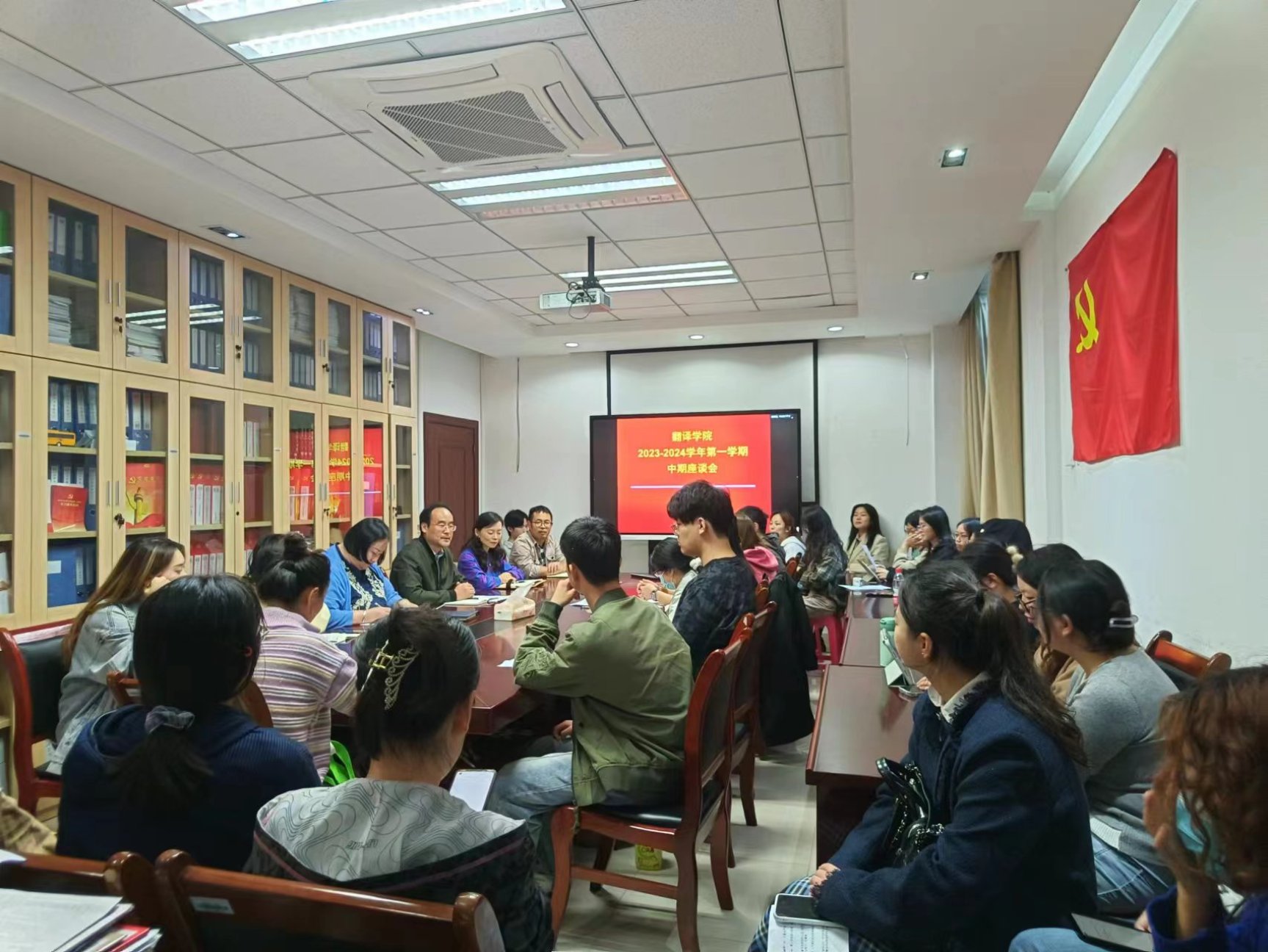 为了加强学院学风建设,深入了解学生学习情况、生活状态,提升学院教学水平。2023年10月31日下午,我院在立德楼B109召开了2023-2024学年第一学期本科教育教学中期座谈会。学院副院长杨志亭、党总支书记张丽、教学秘书李亮、本科辅导员王品和唐芊,以及本科四个年级的班长和学习委员参加了此次座谈。会议由杨志亭副院长主持。