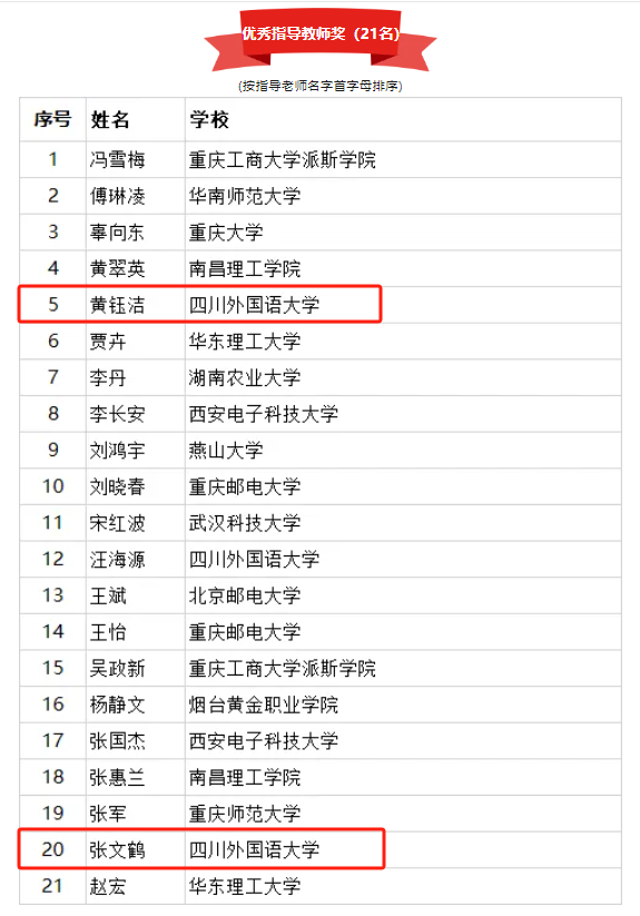 近日,第四届“优译杯”全国技术翻译大赛圆满结束。本届大赛由全国翻译专业学位研究生教育指导委员会、西部高等院校外语教育教学联盟、重庆市普通本科高校外国语言文学专业教学指导委员会联合指导,重庆翻译学会、四川省翻译协会联合主办,重庆邮电大学、四川省翻译协会区域合作工作委员会、成都优译信息技术股份有限公司联合承办,重庆邮电大学教育基金会协办。大赛吸引了全国300多所高校近4700余名学生报名参赛。我院多名同学在凭借优异表现,在比赛中脱颖而出,荣获佳绩。我院黄钰洁老师和张文鹤老师也分别荣获优秀指导教师奖。