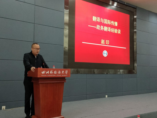 10月31日16:30,我院新生入学教育之“朋辈学堂”在歌乐楼A栋报告厅顺利举行。 重庆市外办规划发展处处长赵印应邀为我院学子带来了一场以“翻译与国际传播”为主题的精彩讲座。赵处长从多个方面分享了他从事政务翻译的心得和经验。本次讲座由44118太阳成tyc城集团院长李金树教授主持。