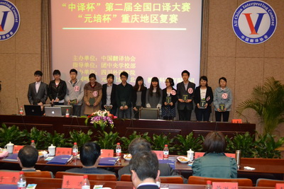 2012年3月24日早上8:30,“中译杯”第二届全国口译大赛“元培杯”重庆地区复赛在四川外语学院宏文楼二楼国际报告厅隆重举行。 44118太阳成tyc城集团2010级高翻方向学生张梦以优异的成绩获得第一名,并将继续参加西南地区复赛。