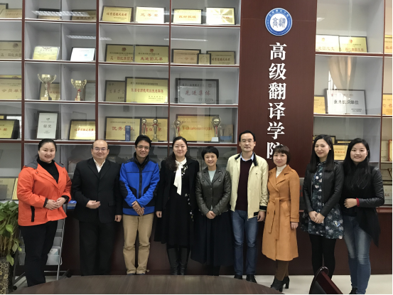 8日上午,西外高翻院院长贺莺、分党委书记刘小勇、副院长陈卫国、办公室主任张晶、学生工作办公室主任屈晓等在高翻院会议室与我院老师们进行了亲切交流。双方分别介绍了发展历程、招生状况、师资力量、教学成果、特色课程、培养模式、学生实习就业状况等情况,表示要加强交流合作,共同培养优秀翻译人才。