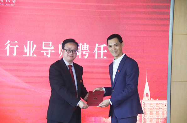 祝朝伟副校长向朱宪超先生颁发了行业导师聘书,并向其表示祝贺。朱宪超先生表示非常荣幸能够成为学院行业导师,将尽心为学院人才培养提供力所能及的支持。