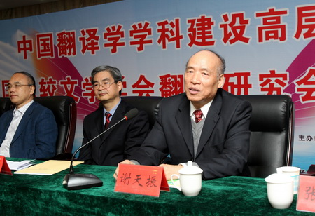中国比较文学学会翻译研究会会长、中国译协翻译理论与教学委员会副主任谢天振教授致开幕词