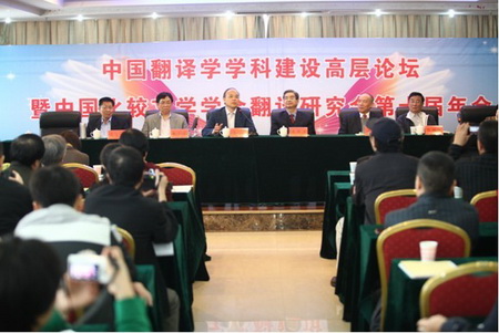 2013年10月19日至20日,“中国翻译学学科建设高层论坛暨中国比较文学学会翻译研究会第十届年会”在我校成功召开。谢天振、许钧、张柏然、王宁、郑培凯(香港)、谭载喜(香港)、王宏志(香港)、杨承淑(台湾)、朱志瑜(香港)、穆雷、邹振环、赵稀方、王东风、柴明颎、刘和平、郭延礼、段峰、任文等知名专家学者以及来自香港、台湾及祖国内地100余高校的200余名代表参加了本次论坛。