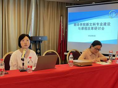 新文科建设中交叉专业、微专业、教改班的建设问题讨论环节,李海峰老师的发言对传统的纯文学语言课程内容进行了反思,以商务英语、经贸英语术语翻译为例指出交叉专业教材内容的全面性、时效性等值得改进,并提出了自己的学术研究新方向。黄雪蓉老师作了教改班情况汇报。设立2021级本科翻译卓越人才教改班“傅雷班”是学院新文科建设的新举措之一,旨在培养创新能力强、适应社会文化产业发展需求、具有较强口笔译高素质语言服务人才。此次通过选拔考试的方式,30名同学成功入选“傅雷班”,并已顺利完成了本学期学习计划。