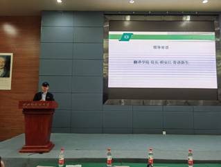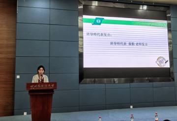班导师代表秦勤老师致辞。为使新同学能够尽快适应大学生活,秦勤老师用心的叮嘱了同学们“五个一”: “一口鸡汤”,正视困难,不忘初心; “一句叮嘱”,踏实付出,不问结果;“一个提醒”,珍惜时光,不负光阴;“一个祝愿”,收获知识、友情、爱情;“一则广告”,高翻队招新。她鼓励大家勇于踏出第一步,抓住每一个提升自我的机会,积极参与高翻队选拔。