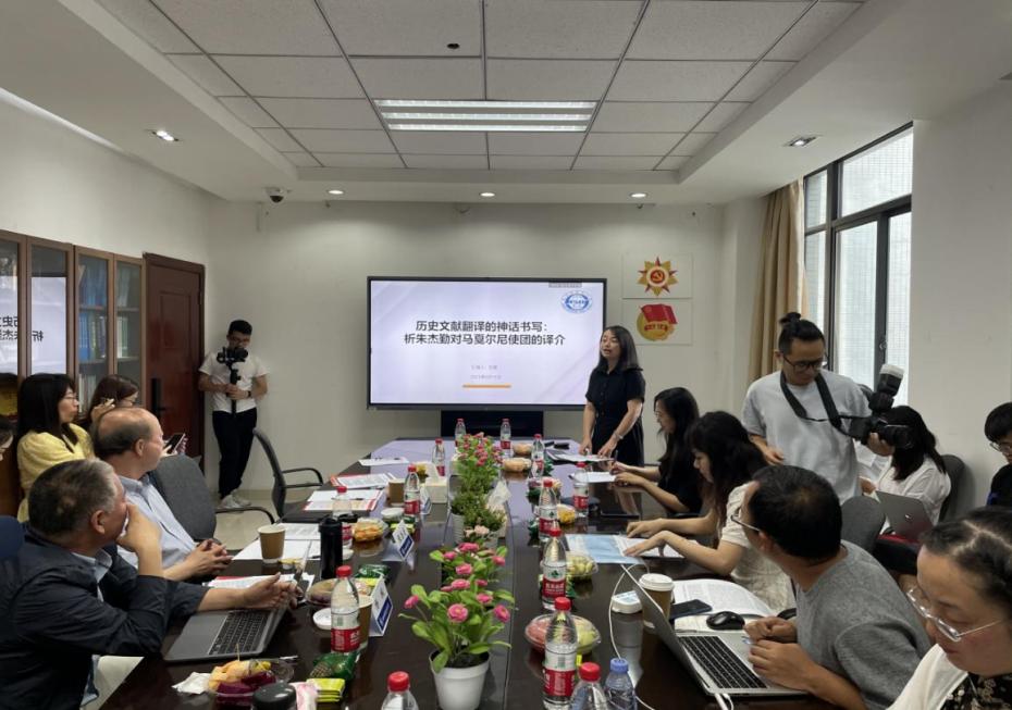 第二位主讲人为刘黎,其分享主题为“历史文献翻译的神话书写:以朱杰勤对马戛尔尼使团的译介为例”。她基于柯文提出的“历史三调”,以朱杰勤在上世纪三十年代和八十年代对马戛尔尼访华使团的两次译介为例对比分析,从方方面面窥视对该历史事件的神话书写,旨在探求翻译对历史的多样化书写。