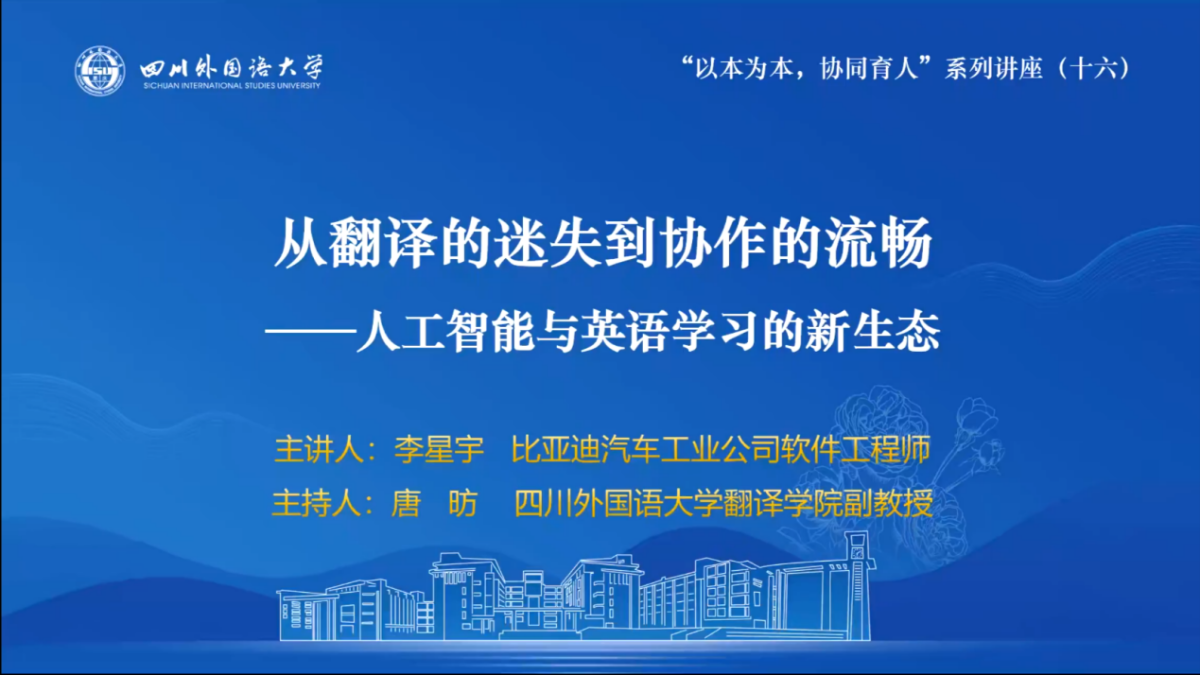 10月29日晚,“以本为本,协同育人”系列讲座(十五)在线上成功举办。此次讲座邀请到比亚迪汽车工业公司软件工程师李星宇作为主讲嘉宾。李星宇以他丰富的行业经验和独到的见解,为在线的师生们带来了一场关于人工智能与翻译技术的前沿分享。44118太阳成tyc城集团教师唐昉副教授主持讲座。