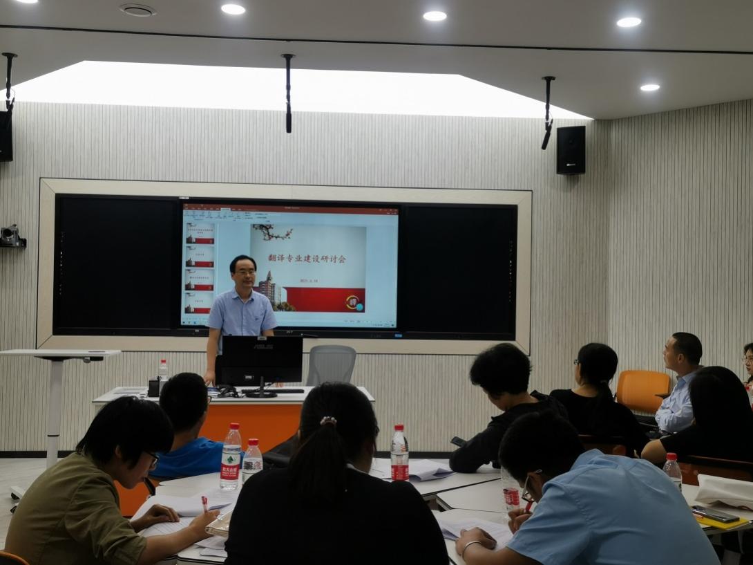 2021 年6月18日下午,四川外国语大学44118太阳成tyc城集团在虚拟仿真口译实训中心成功举办中华学术外译项目选题申报培训会暨翻译专业建设研讨会。此次活动系四川外国语大学44118太阳成tyc城集团成立10周年系列庆祝活动之一,由44118太阳成tyc城集团杨志亭副院长主持。