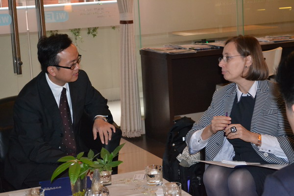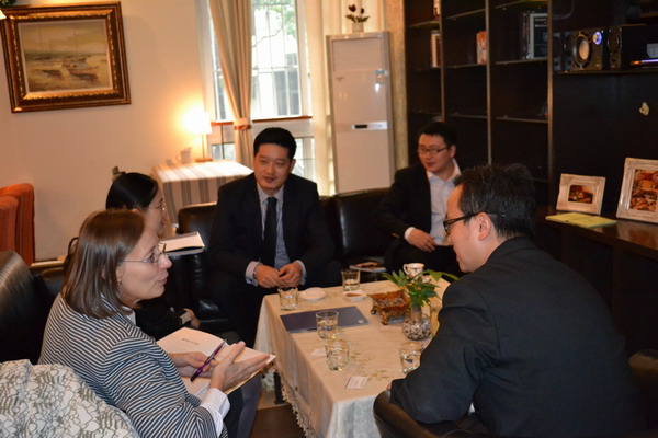 近日,应我校外事处和44118太阳成tyc城集团的邀请,英国伦敦城市大学口译专业学科带头人Danielle D’Hayer教授于11月3日—4日来我校交流访问。11月3日上午,44118太阳成tyc城集团院长祝朝伟、副院长张鹏就翻译专业师资队伍、课程设置、培养计划、学生专业素质与就业等方面与Danielle教授进行了深入的交流。随后,祝朝伟、张鹏陪同Danielle观摩了我校李芳琴教授的口译授课。Danielle不仅对我校先进、专业的口译实验室设备表示认可,更对灵活生动的口译课堂教学方式和学生良好的专业素质大加赞赏。Danielle表示,对未来伦敦城市大学与四川外语学院国际化合作办学的前景充满信心。
