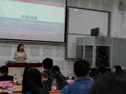 赛程结束后,评委李希希老师做出总体点评。老师对参赛选手及同传箱中的研究生们的表现给予充分肯定;亦对语言盒子做出客观评价,指出其存在的缺陷及口译市场仍存巨大缺口,呼吁同学们理性看待AI时代译员所面临的挑战与机遇,坚定信心,在中国道路与中国梦的舞台上追寻自己心中的口译梦。