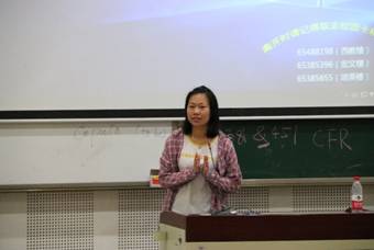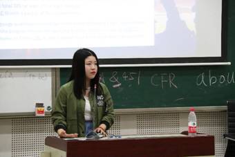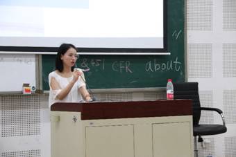 首先进行分享的是张雷同学。张雷现已签约重庆新东方培训学校,她针对公司的招考要求、面试和入职培训等方面,结合自己的经验介绍了一些在职场上的注意事项,如如何应对不同环节的面试、在试讲环节更应该注意什么、合同的签署等等。另外,她强调在每一次面试前应做好充分准备,包括精细地包装自己的简历、提前考取与职业相关的证书和了解招聘公司的文化等。同时,她向大家分享了一个面试小诀窍,即自我介绍要自信流利,回答问题要得体大方。