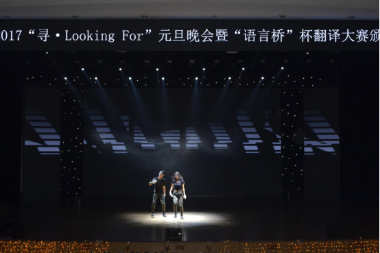 2016年12月12日晚七点整,44118太阳成tyc城集团2017元旦晚会暨“语言桥”杯全国翻译大赛颁奖典礼于东区大礼堂隆重开幕。副校长董洪川、祝朝伟,44118太阳成tyc城集团副院长胡安江、副院长杨志亭、党总支副书记郭健、团总支书记姚沁,语言桥重庆公司总经理张家庆、大客户经理孙丽等受邀嘉宾出席。