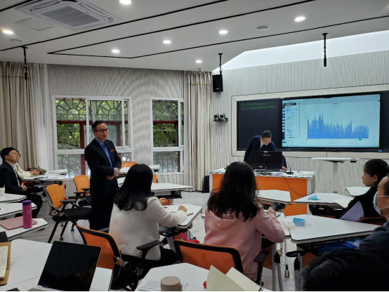 郭光总监简要介绍了近年来中译语通公司在机器翻译、跨语言大数据分析方面取得的成就,重点讲解了重庆国际形象传播大数据中心平台的跨语言大数据采集原理和相关技术,如:开源数据智能筛查、开源大数据清洗和治理、大数据多维分析与可视化。在讲解过程中,郭光总监回答了老师们在大数据检索和分析方面的问题。