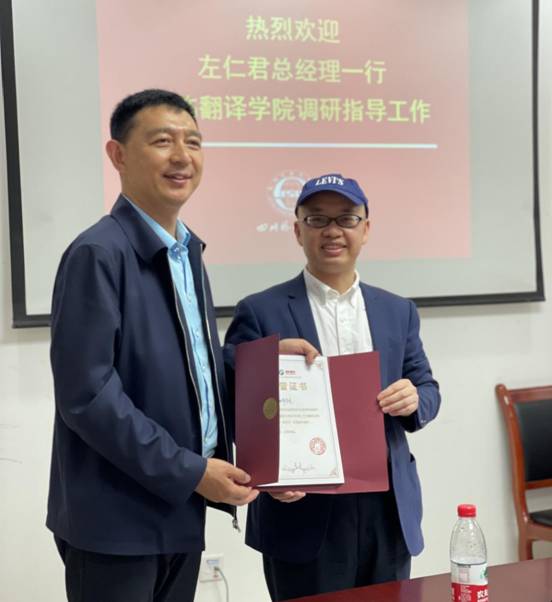 44118太阳成tyc城集团胡安江院长首先向与会专家学者表示了欢迎,并从办学历史,专业建设,人才培养以及学院取得的内涵建设成果几个层面向大家介绍了44118太阳成tyc城集团。座谈会上,左仁君总经理讲述了公司的发展历程以及人才培养理念,并高度评价了我院同学参加该公司第一届翻译训练营的良好表现,表示从我院同学的优良表现中可以看到我院的办学成就和人才培养质量。希望双方继续加强合作,依托校企合作平台开展实习实训,搭建合作项目,加强校企深度融合,开启校企合作的新篇章。与会其他学院领导也介绍了他们在深化校企合作,探索协同创新模式方面所作的尝试以及所取得的成果。