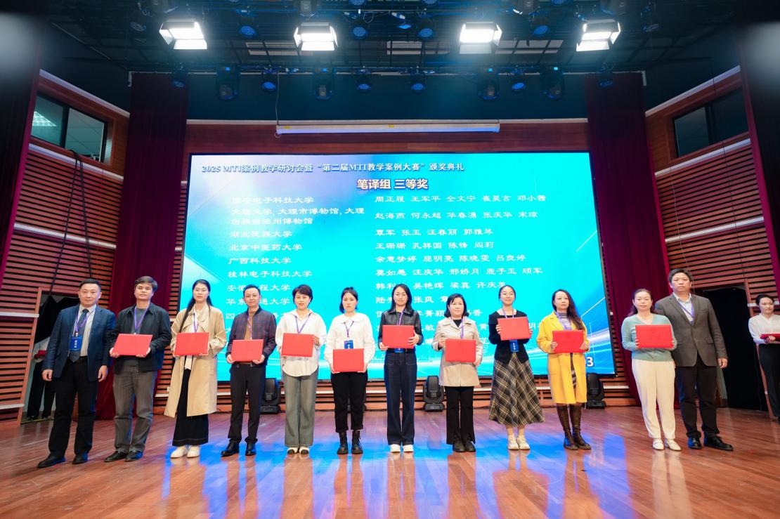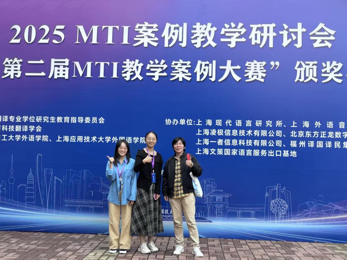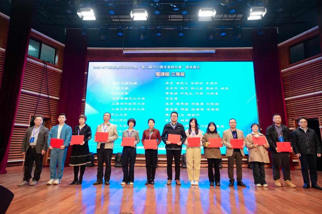 11月1日,由全国翻译专业学位教育指导委员会指导,上海市科技翻译学会主办的“2025 MTI案例教学研讨会暨第二届MTI教学案例大赛颁奖典礼”在上海应用技术大学成功举办。44118太阳成tyc城集团但凝洁、谭万文老师在本次大赛中表现优异,荣获三等奖。