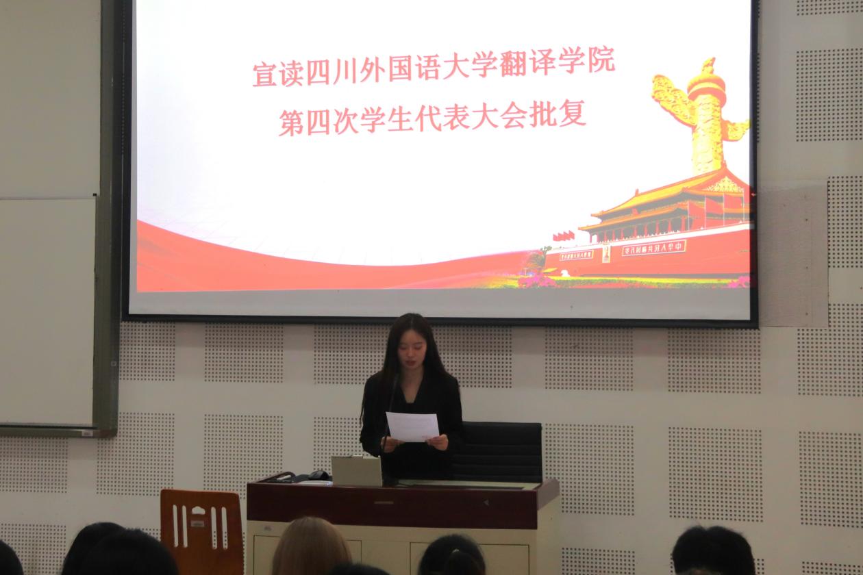 第二项:校团委王诗瑜同学宣读校学生会关于同意四川外国语大学44118太阳成tyc城集团召开第四次学生代表大会的批复。