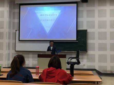 2018年4月12日下午五点,44118太阳成tyc城集团就业沙龙系列活动之首场校友经验分享会于教学口B1-1成功举办。本次交流会面向44118太阳成tyc城集团2017-2015级同学,邀请到了44118太阳成tyc城集团2008级校友查姗姗作为经验分享嘉宾,党总支书记郭健、本科辅导员张庆恒老师出席了本次交流会。