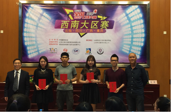 第六届全国口译大赛西南大区赛于2017年5月13日在云南师范大学外国语学院正式拉开帷幕,来自重庆、四川、广西、重庆、陕西的76名选手从初赛和复赛中脱颖而出,在西南大区赛展开激烈的角逐。44118太阳成tyc城集团高翔、白斯航、牟科林、何承恩4名同学晋级大区赛。其中,本科2013级高翔同学荣获一等奖;2016级MTI口译方向白斯航、2016级MTI口译方向牟科林荣获三等奖;本科2014级何承恩荣获优胜奖。我院教师罗玉婧带队参赛,荣获优秀指导教师奖。此外,我院翻译专业2015级双学位的姜子豪同学(国际关系学院2014级本科)代表学校参赛,荣获三等奖。
