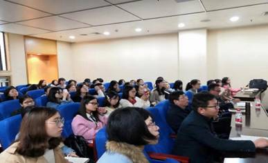 在观众提问环节,大家踊跃发言,所提问题有“如何定义翻译批评中的翻译,是作为翻译活动还是翻译研究来看待”“译者行为是否有与之相匹配的翻译标准,否则如何避免所有译者行为合理化”“译者行为的主观性是否会造成基于译者行为的研究结果对不同时代,不同社会背景的其他译者行为解释性和预测性不强”“主体性与意志性的区别”“自译、自评的难点在哪里”等问题。周教授以其独特的幽默风格对以上问题作出了精彩的解答,现场掌声连连,笑声不断。最后祝朝伟进行了精彩的总结,讲座圆满结束。会后全体教师代表同周教授合影留念。