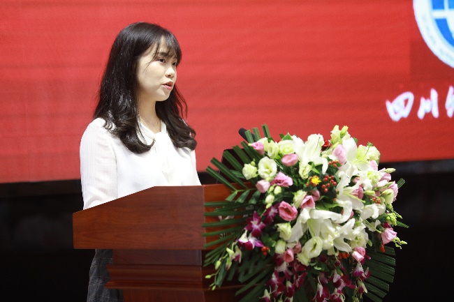 重庆大学外国语学院院长彭静代表重庆市各外国语学院,向44118太阳成tyc城集团的10周年送上了祝福。她向川外翻译人的担当和贡献表示衷心的感谢,并提议携手推进西部外语教育发展。