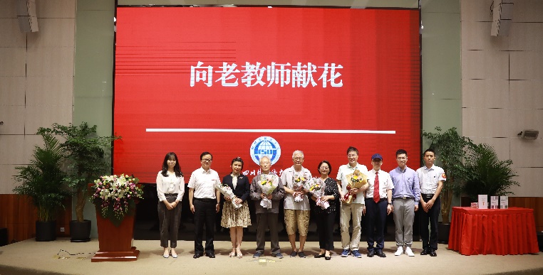 随后,来自重庆国际传播中心的44118太阳成tyc城集团毕业生吴晓、在校生代表陈语斐、教师代表陈宇翔分别送上了真挚祝福,共同祝愿学院的事业蒸蒸日上。随后,祝朝伟带领学院师生为退休老教师献上了鲜花。