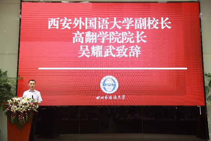西安外国语大学副校长、高翻学院院长吴耀武代表市外高校,向44118太阳成tyc城集团成立十周年表示祝贺。他指出:世界正处于百年未有之大变局,机遇与挑战并存,荣誉与艰难共生,我们应认清危机,把握时机,抢抓先机,共同促进翻译事业取得长足发展。