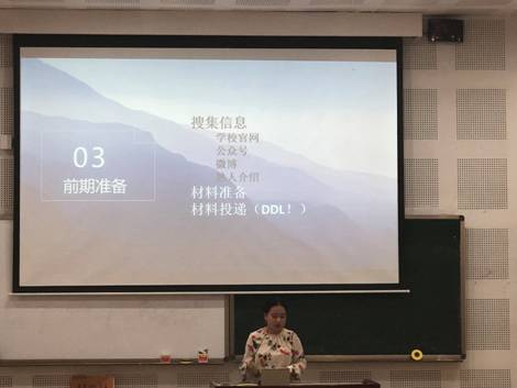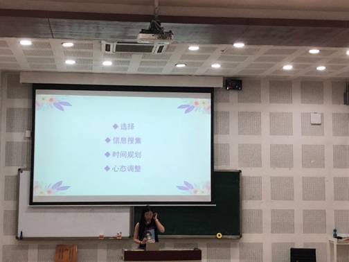 接下来,童玉君同学与到场同学交流了她在跨专业考研方面的经验。童玉君考取的是四川大学汉语国际教育专业,她将主要内容聚焦于学校选择、信息搜集、时间规划、心态调整四个方面,向同学们详细解释了如何分辨兴趣导向型、文凭导向型两种不同考研渠道,以及在跨专业考研时如何精准、快速地定向。她也提醒同学们,不要一直怀有负罪感,效率永远是第一位的。