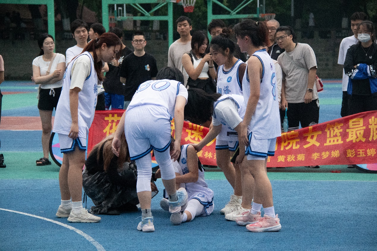 全场比赛结束,两队打平,比赛进入加时。加时赛双方你来我往,难分伯仲,第一个加时赛结束,平局;比赛进入第二场加时。这时学院女篮队伍展现了惊人的毅力与爆发力,高强度的比赛导致队员身疲力竭,但在场外拉拉队的声声呐喊支持中,大家咬牙坚持,做好每次防守,耐心组织每次进攻,终场哨响,比分停止在56:51。继2023年夺冠后,学院女子篮球队蝉联校篮球联赛总冠军。