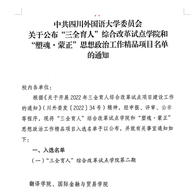 学院落实立德树人根本任务,建构以学生成长为中心的教育教学体系,从课程、教材、教学、学生科研等方面,凝聚多方合力,打造“全员育人、全过程育人、全方位育人”新格局,立足时代要求,提升翻译人才培养质量。