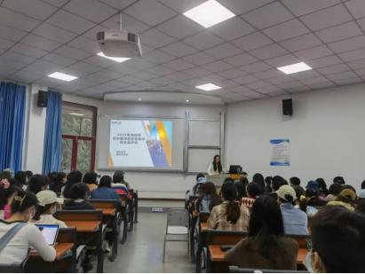 学院总支副书记张丽首先代表学院对海扶医疗科技有限公司的两位代表表示欢迎,并鼓励同学们立足专业学习,通过拓宽自身知识面,提升综合素养,成为有专业本领的复合型人才。