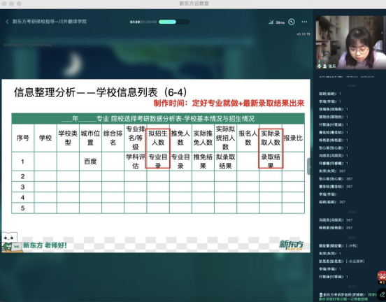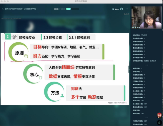 配合学校疫情防控要求,本次交流分享采用线上直播形式,以“考研择校指导”为主题,主讲人为新东方考研优秀英语教师张乐老师。