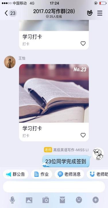 考虑到前两周的教学学生尚处于适应期,可能存在忘记或迟到现象,因此每门课程会提前一天发出上课提醒,提醒同学们准时上课,签到打卡。课上包括签到打卡,视频学习,录播讲解,课堂讨论与总结等环节。