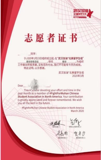 新时代的大学生不仅要具备扎实的专业知识技能,更需有社会责任感。翻译专业的学生在练好基本功的同时,更要有服务国家的意识,明白新时代外语人、翻译人的使命与责任。在重大疫情面前思考,作为翻译人,我们能够为国家和社会做什么。疫情开始后,我将从各种渠道得到的翻译招募信息及时转发给所带学生,鼓励学生积极报名志愿服务工作。所带学生中,1名双学位学生积极参与志愿服务,在“武汉加油•北美留学生组”翻译部承担翻译工作,为海外物资援助提供翻译服务。