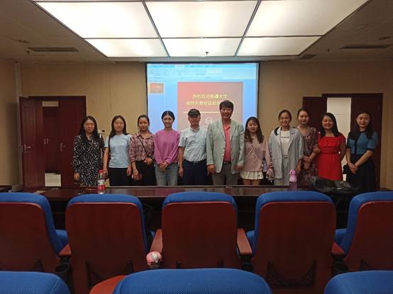 在两个小时的讲座中,谢旭升教授生动幽默的风格,引得现场掌声阵阵,笑声不断,也让在座的老师和同学们深受启发。在互动问答环节,口译专业的同学就如何提升口译技能向谢教授请教,谢教授表示“不经历风雨,怎能见彩虹?光鲜高薪的口译工作者们背后都有许多不为人知的付出,要坚持从基础做起,听、说、读、写、译全面发展,才能成长为一名合格的口译员”,胡安江教授也补充到,欲戴皇冠,必承其重。只有“坐得住冷板凳,才能在自己专业领域有所建树”。讲座在听众热烈的掌声中圆满结束。会后,我校师生代表与谢旭升教授合影留念。