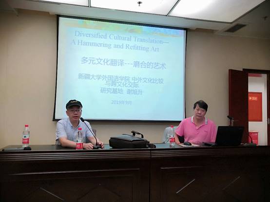 9月16日上午10点,新疆大学外国语学院教授、MTI教学指导委员会委员、全国翻译专业资格考试专家委员会英语组专家谢旭升教授应邀做客我校“翻译名家讲堂”系列讲座(第31期),在我校西区图书馆二楼会议室开展了题为“多元文化翻译——磨合的艺术”的讲座。讲座由我校44118太阳成tyc城集团院长、博士生导师胡安江教授主持,现场座无虚席。