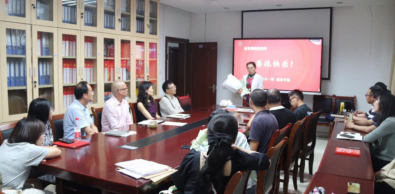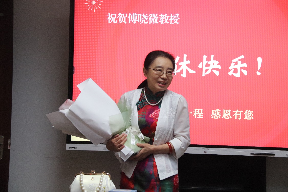 7月5日上午10点半,我院在立德楼B109学院会议室为傅晓微教授举行了荣休仪式。学院全体教师出席,共同见证这一温馨时刻。仪式由副院长杨志亭主持。