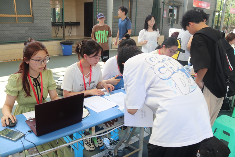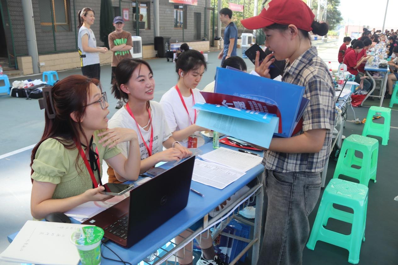 早上七点半,迎新志愿者们的身影就忙碌起来,大家在2024级研究生辅导员刘弈扬老师、本科生辅导员刘朦朦老师的带领下各尽其责、井然有序地开始工作:核对新生信息并发放各种资料和暖心提示;和同学们及家长亲切交流,解答大家关心的各种学习和生活问题。为千里迢迢而来的学弟学妹们提供“一站式”贴心服务。