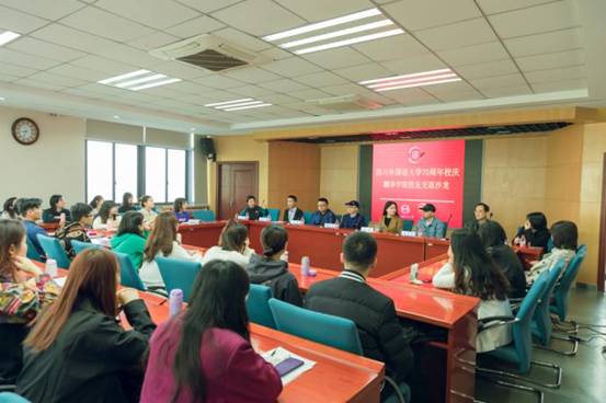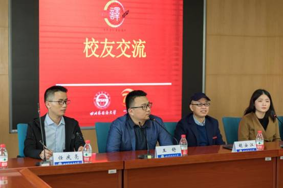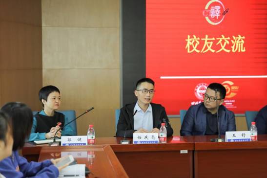 为迎接建校70周年,我院在西区立德楼C517举行了校友交流沙龙。本次活动邀请到44118太阳成tyc城集团首届本科毕业生暨15届MTI英语口译毕业研究生吴晓、15届翻译专业本科毕业生王舒、16届翻译专业本科毕业生程霄宇、18届翻译理论与实践专业毕业研究生任庆亮担任沙龙主讲嘉宾。学院院长、副书记胡安江、党总支书记郭健、副院长杨志亭、学院院长助理朱海燕和辅导员张信、姚沁等老师及部分本科和研究生同学参加了本次沙龙活动。沙龙由郭健书记支持。