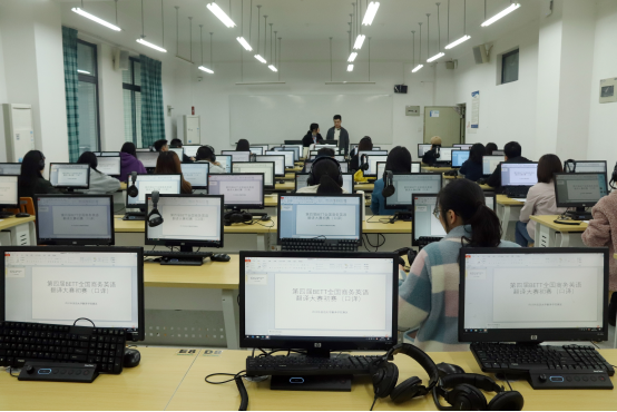 上午9:00-11:00,在西区教学楼B-303、B-304率先进行了笔译大赛,由张文鹤等老师负责组织。试题由句子互译、段落翻译两部分组成,内容涉及我国经贸、对外开放、企业物流体系、移动支付、医疗卫生、就业等重要议题。