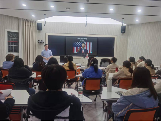 Levin老师从“准备”、“组织”、“风格”、“记忆”、“传达”五个方面对演讲进行了全方位阐释,强调“以听众为中心,对所有听众进行分析”。关于“公共演讲的传达”,他着重对“眼神交流”和“肢体语言”进行了讲解。与大家就“如何正确地与听众进行眼神交流”进行了深入探讨,并传授了 “肢体语言”的使用技巧。讲座中,Levin老师还针对这演讲比赛大家出现的问题进行了举例分析,并回答了现场观众提问。讲座最后,Levin老师强调指出,“公共演讲”并不局限于是一门大学课程,更是大家应当具备的一项生存能力,无论将来从事什么职业,这项能力对于个人的成长和发展都极为重要并鼓励大家多与同学、朋友一起练习公共演讲,不断尝试、共同进步。