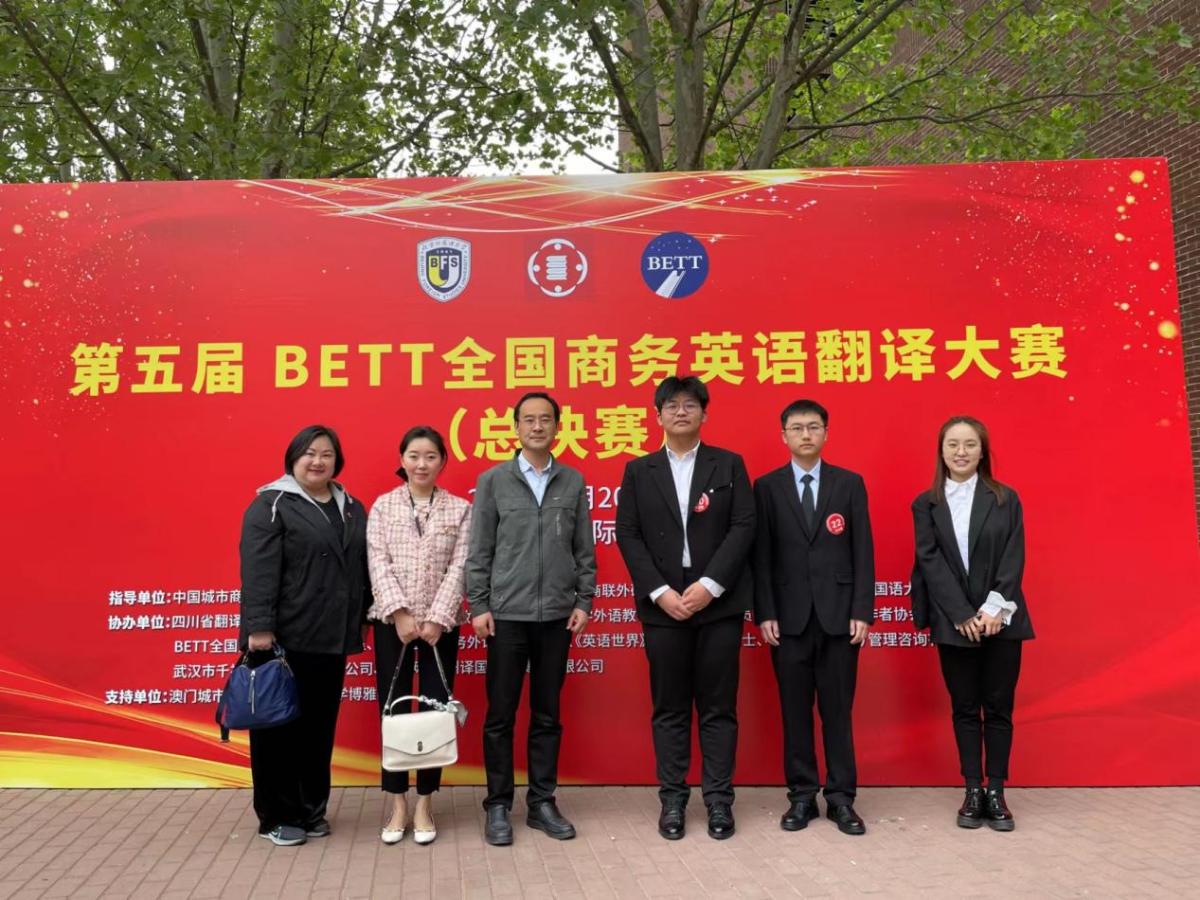 在第五届BETT全国商务英语翻译大赛(总决赛)中,MTI2023级宋男杰同学获研究生组口译一等奖,李昕悦获得研究生组口译三等奖;本科2021级李林晟同学获本科组口译一等奖,本科2021级陈雪雨同学荣获本科笔译组特等奖。我院荣获“最佳组织单位奖”。