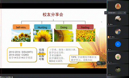 第二期分享会主要聚焦于口译职场领域和教育行业,邀请了徐雯、张杨娟、廖茏蕙三位校友。校友们从目前口译领域对译员的综合能力素质的要求以及求职各阶段的注意事项等方面给同学们提供了很多实用的信息和建议。